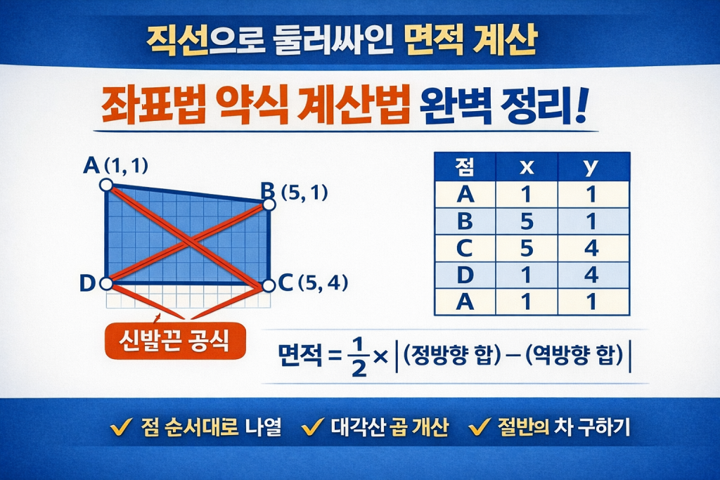 좌표법좌표법 약식 계산법,좌표면적 계산,면적 계산 공식,신발끈 공식,직선 면적 계산,다각형 면적 계산,측량 면적 계산,토지 면적 계산,건설 실무 계산,좌표 계산법,평면좌표계,측량기사,건설기술사,감정평가사,토지보상,도면 면적 산출,CAD 면적 계산,엑셀 면적 계산,수기 계산법,면적 산정 방법,경계 좌표 계산,좌표표 계산,측량 실무,건설 계산,토지 경계 면적,면적 산출 예제,수학 공식 정리,기술사 시험,계산 공식 정리,실무 계산법